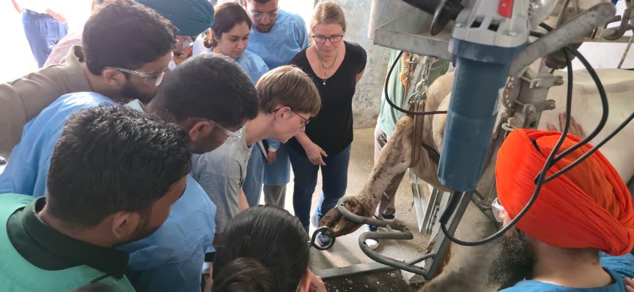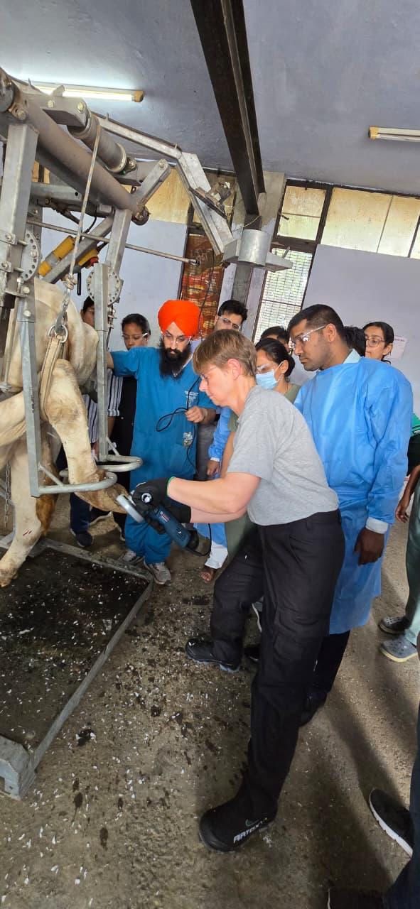 demonstrated advanced hoof trimming techniques, with special emphasis on the White Line Methodology—a globally recognized approach for effective diagnosis and correction of claw lesions in cattle. The live demonstrations and hands-on training provided participants with valuable insights into modern hoof health management practices. Dr. Gill emphasized the importance of scientific hoof care in improving animal welfare, productivity, and longevity of dairy animals. He appreciated the initiative taken by the institution in bringing international expertise to benefit field veterinarians and farmers. Dr. S. S. Randhawa, Dean, College of Veterinary Science highlighted that lameness is a major yet often overlooked issue affecting dairy profitability, and such capacity-building programmes play a crucial role in bridging the gap between research and field application. He also highlighted the significant work