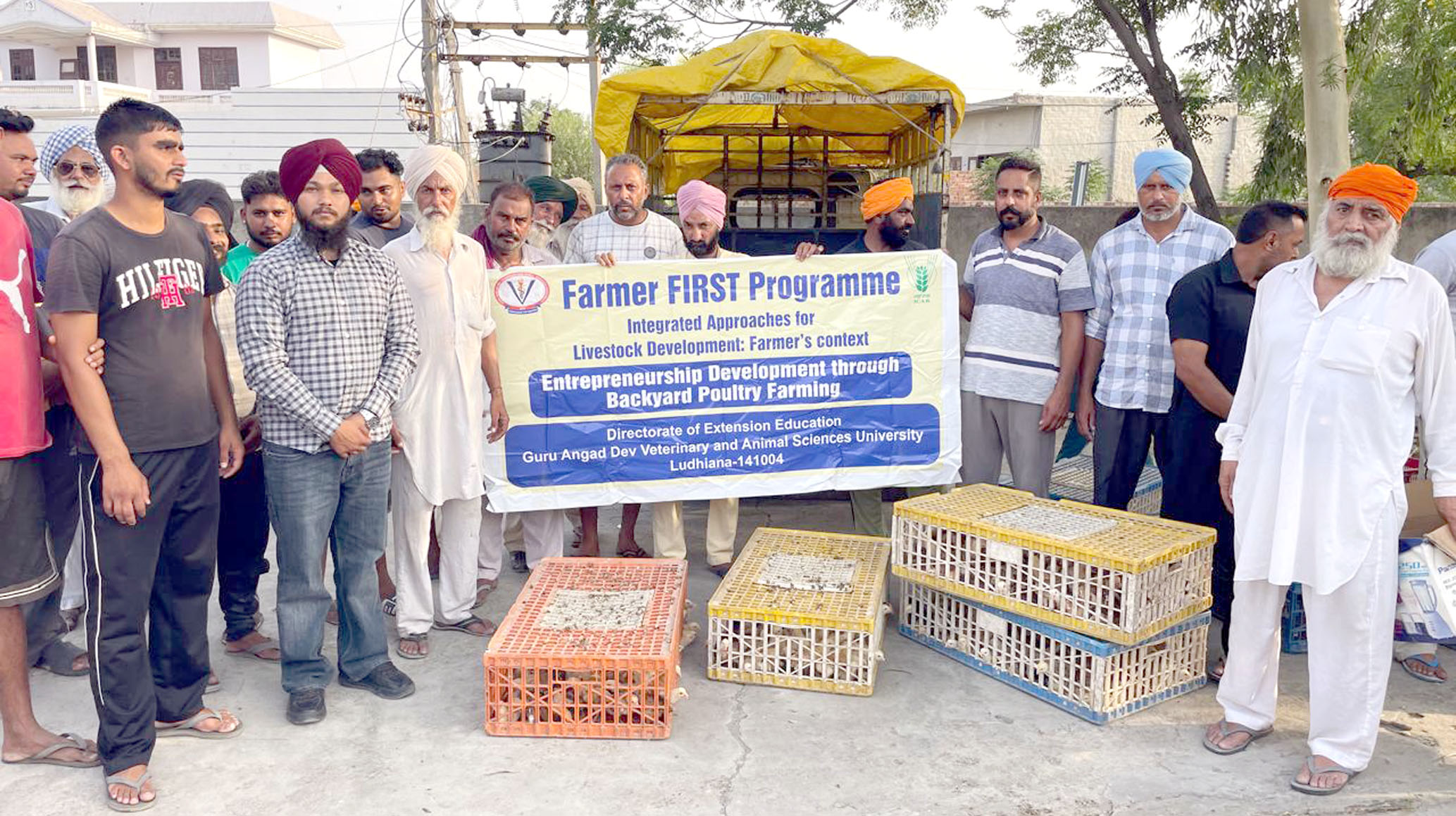 Guru Angad Dev Veterinary and Animal Sciences University conducted input distribution-cum-awareness camp on backyard poultry at Village Mehal Kalan under ICAR sponsored Farmer FIRST project.