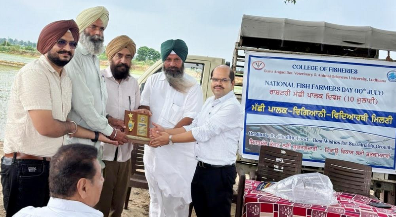 Farmers Day (10 th July) to felicitate the dedicated fish farmers, fishers and fish traders, contributing to sustainable growth of the fish value chain at level. A scientists-farmers-students-meet was organized at the fish farm of S. Gurcharan Singh in village Dolon Kala of district Ludhiana. Scientists and graduating fisheries professionals from College of Fisheries interacted with the fish farmers, including women enthusiasts, who were honored for their ro