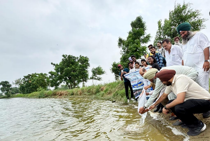 Special issue of university monthly extension magazine Vigiyanak Pashu Palan, dedicated to National Fish Farmers Day with informative extension articles on fisheries, was also distributed among the farmers. President and members of university linked Innovative Fish Farmers Association (IFFA) of Punjab released fish seed in the pond, commemorating successful breeding of fish on 10 th July in 1957, which lead to mass breeding of fish in captivity and subsequently Blue Revolution, rising India to the top as second largest fish producer of the world with invaluable contribution of fish farmers.