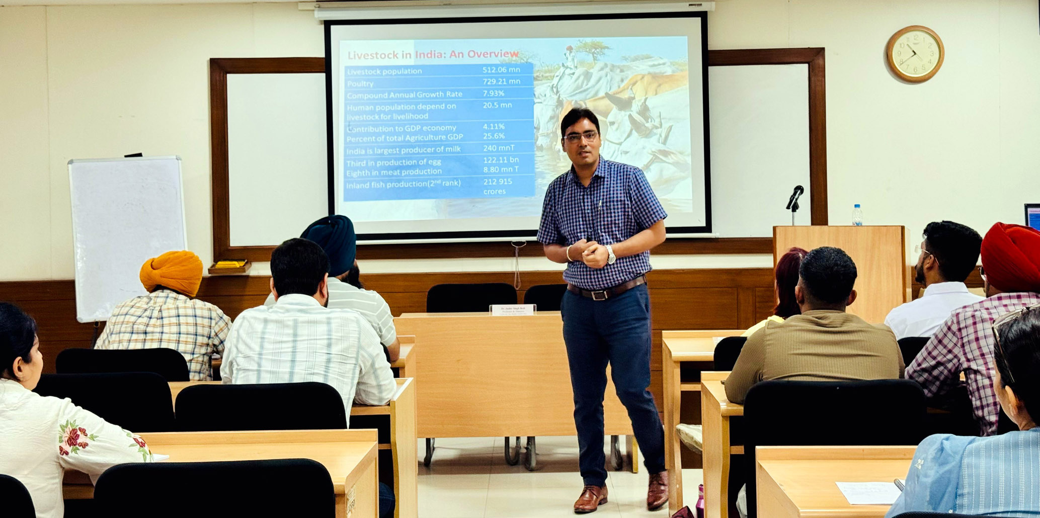 Dr. Jasbir Singh Bedi, Director, Centre for One Health, Guru Angad Dev Veterinary and Animal Sciences University, Ludhiana, delivered two expert lectures on heats stress in livestock and one health framework during a three-day training programme on “Heat Wave Risk Reduction & Resilience”. It was organised by the Environment & Climate Change Centre, Mahatma Gandhi State Institute of Public Administration, Chandigarh (MGSIPA), Government of Punjab. Dr. Bedi provided in-depth insights into integrated one health approaches, livestock heat stress mitigation, and climate-resilient farming practices. Dr. Bedi also detailed Punjab’s One Health initiatives, including the State levels Zoonoses Committee, Rabies Control Committee, and the National Antimicrobial Resistance (AMR) Policy, along with key Animal Husbandry schemes aimed at disease control, farmer support, and productivity enhancement. Emphasising that climate change, zoonotic diseases, and AMR are interconnected threats requiring coordinated action, Dr. Bedi stressed the need for collaboration between veterinary, medical, environmental, and administrative sectors. The programme was chaired by Incharge, Environment & Climate Change Centre, MGSIPA, who highlighted the importance of building the capacity of government officials and field personnel to address heat wave risks in a sustainable and coordinated manner. The workshop targeted administrators, technical officers, and field staff. The event underscored Punjab’s commitment to strengthening institutional capacity for climate resilience while advancing the One Health agenda in the state.