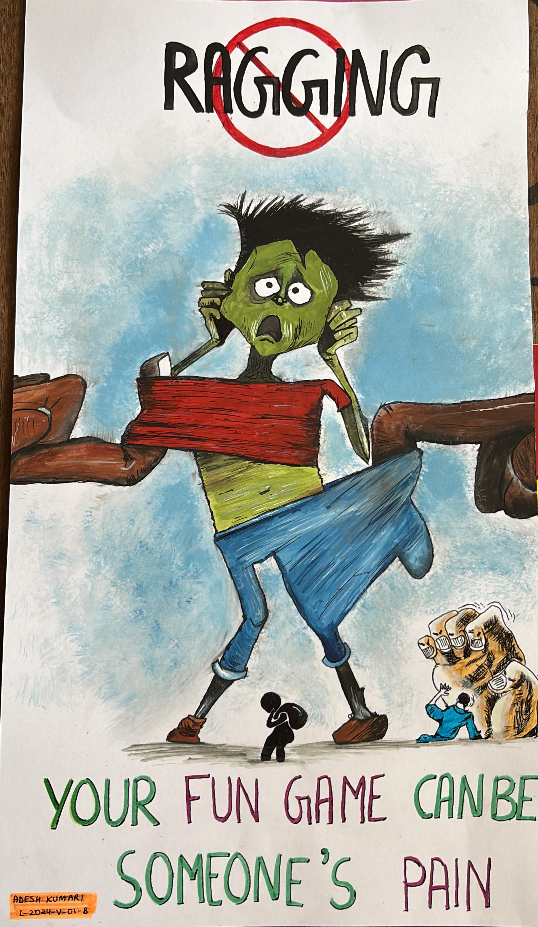 In the poster competition, the students enthusiastically participated with their creativity and commitment to the cause through powerful visuals and impactful messages. Each entry was adjudged on creativity, relevance to the theme, and overall presentation.The competition not only highlighted the artistic talents of the students but also served as a platform to reinforce the college’s zero-tolerance policy towards ragging.