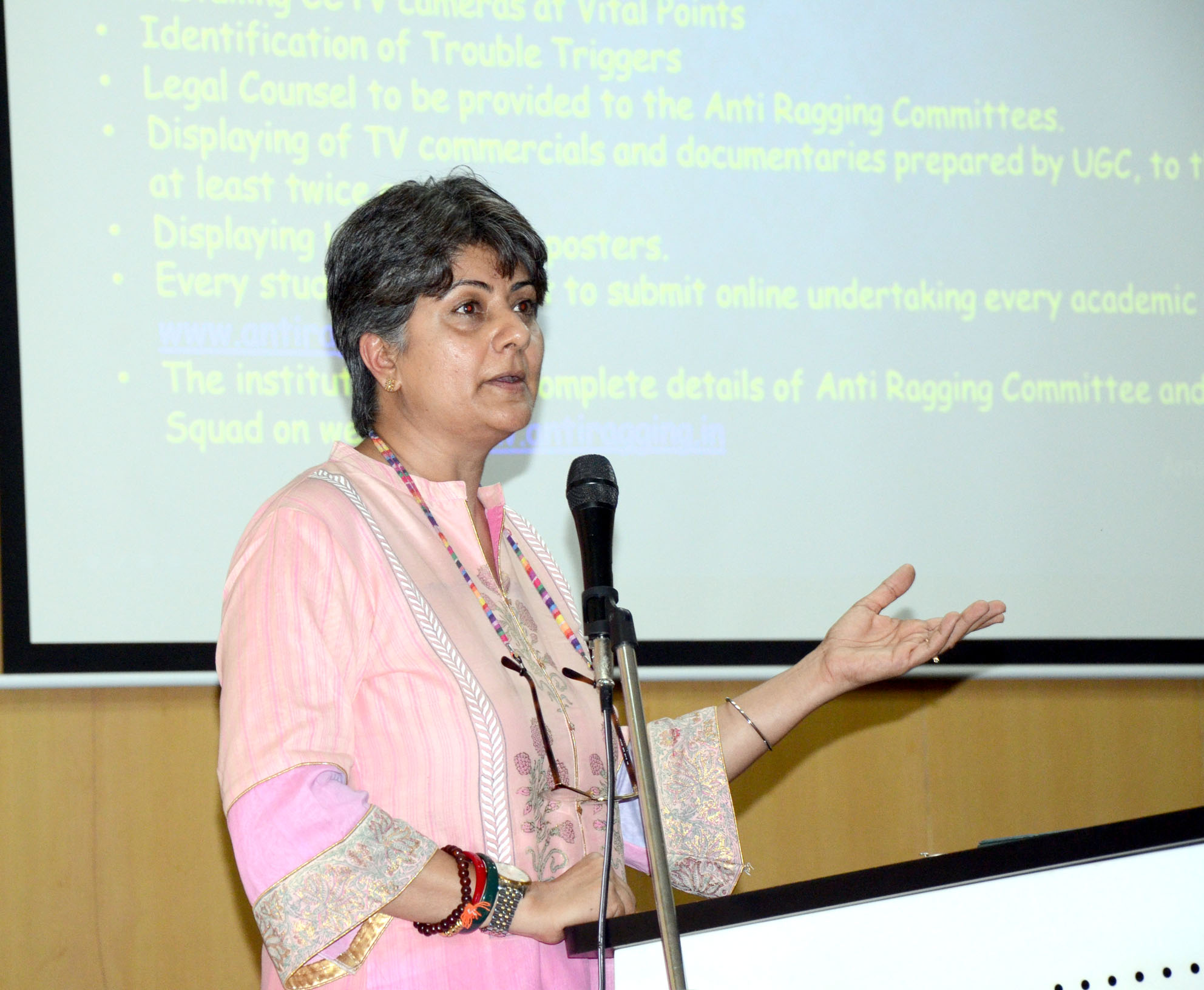 Dr. Cheema said that Anti-ragging warnings should be prominently displayed in the institution's prospectus, website and all the buildings and hostels. She sensitized the students about the ill-effects of ragging and the penalties involved. She informed students about the stringent laws against ragging and shared a telephone number of the National Anti-Ragging Helpline.