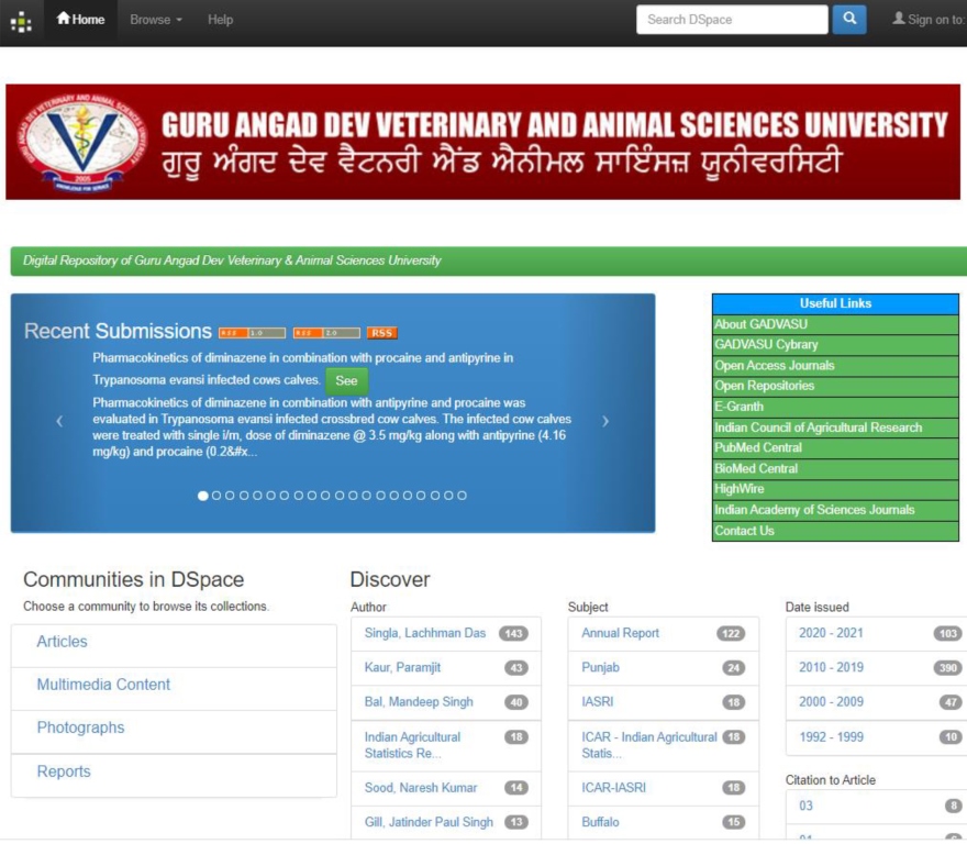 Ludhiana launched the Digital Repository of the University, developed for codifying the records of scientific outcome of the University. The repository developed by Dr. H.S. Banga, Registrar and Dr. J.P.S. Gill, Director of Research with technical assistance from Information Technology and Library professionals. It has been customized to retrieve articles as per NAAS Rating and Impact Factor, i. e. matrix required for compilation of reports of the University involving data about University publication(s). The multimedia contents encompassing radio and TV talks delivered by faculty of the University will also be preserved. The digital contents available on the repository will be accessible to fraternity of the University including faculty, students and researchers for better comprehension of the teaching and research activities. This would also be helpful to faculty to keep a record of their publications in digital mode and for better accessibility. Training programmes have been organized by the Directorate of Human Resource Management of the University to acquaint the faculty with digital content uploading on this portal. In addition, a manual for helping faculty and other stakeholders for uploading digital contents on repository has also been compiled and circulated in the University.