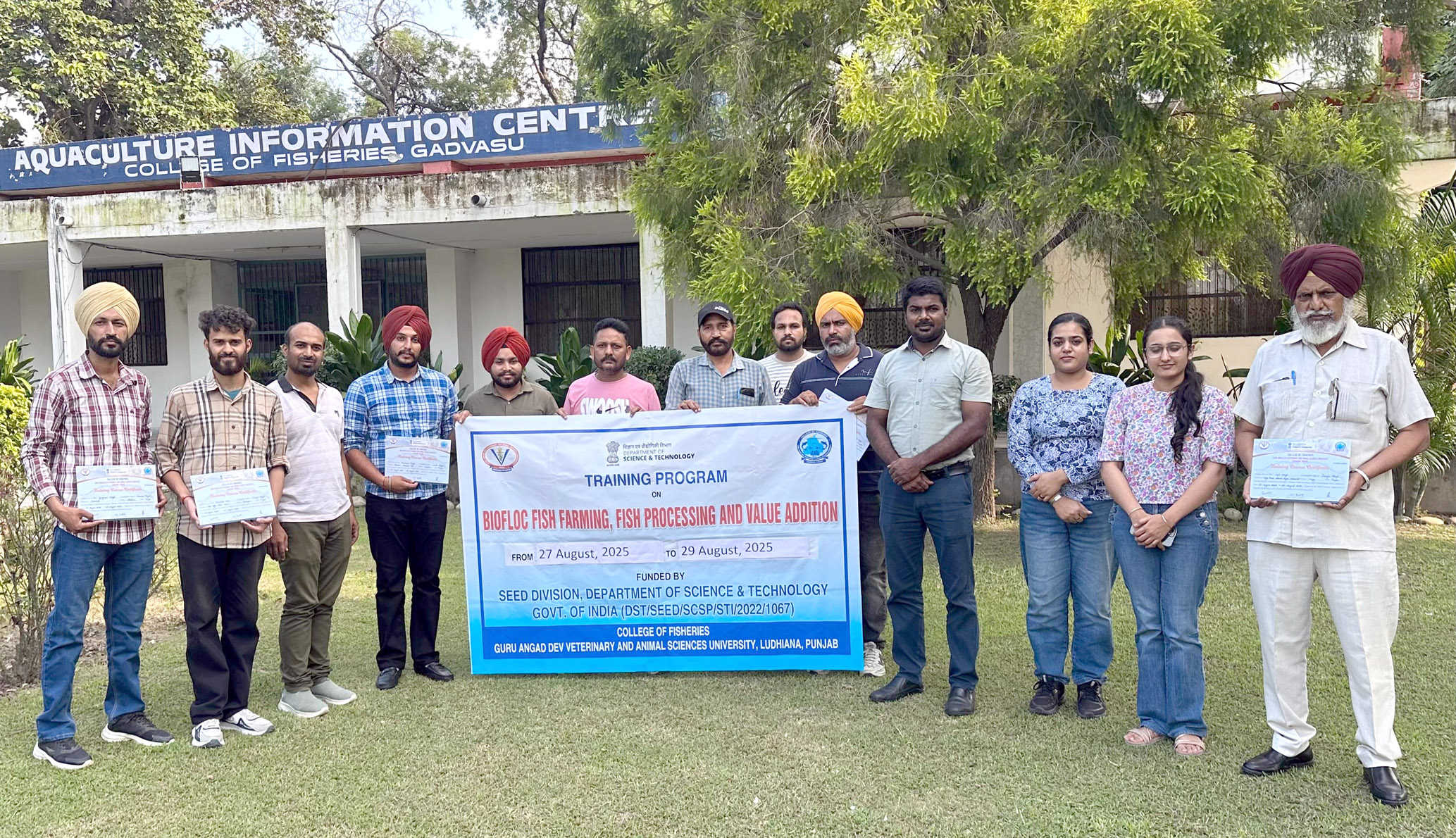 College of Fisheries (COF), Guru Angad Dev Veterinary and Animal Sciences University, Ludhiana organised training programs on Biofloc Fish Farming, Fish Processing & Value-Addition for Scheduled Caste (SC) stakeholders of Punjab. It was under the project funded by Science for Equity Empowerment & Development (SEED) Division of Department of Science & Technology (DST), Govt. of India (GOI). It empowered thirty stakeholders with livelihood boosting entrepreneurial skills for biofloc based aquaculture, processing of fish and preparation of value-added products.