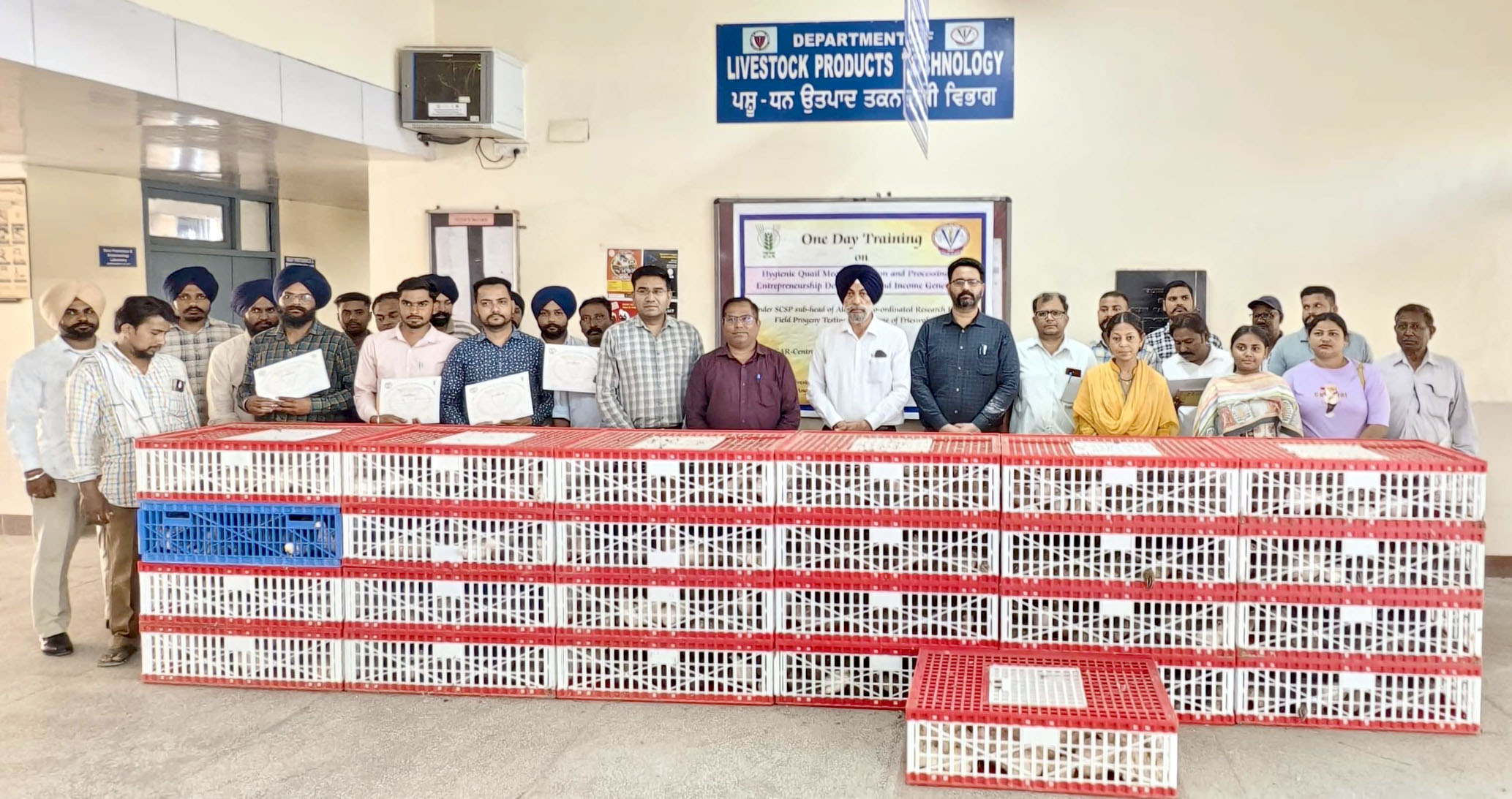 ialized training programme on “Hygienic Quail Meat Production and Processing for Entrepreneurship Development and Income Generation.” The programme was conducted under the SC-SP sub-head of AICRP on Cattle: FPT with the objective of strengthening entrepreneurial skills. 25 trainees representing different districts of Punjab participated. The sessions were focused on hygienic production, scientific processing techniques and innovative value-addition strategies for quail meat prod