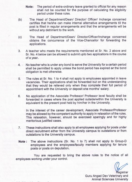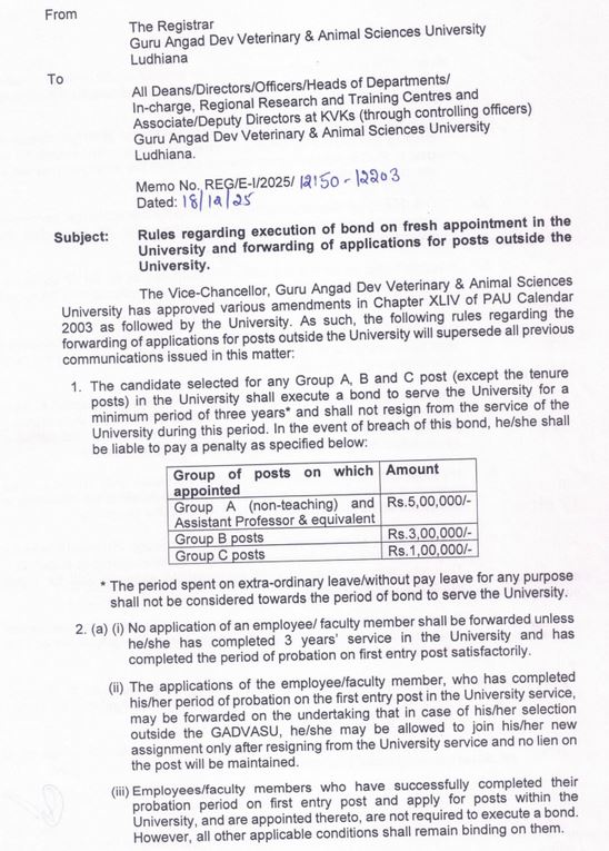 Rules regarding execution of bond on fresh appointment in the University and forwarding of applications for posts outside the University