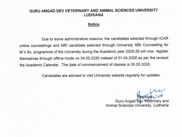 Notice regarding NRI candidate selected through University NRI counselling for the year 2025-26