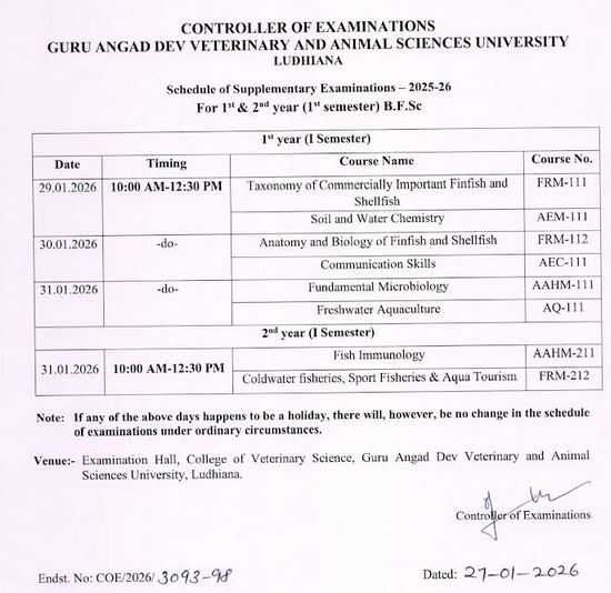 Schedule of Supplementary Examinations - 2025-26 For 1st & 2nd year (1st semester) B.F.Sc. |
