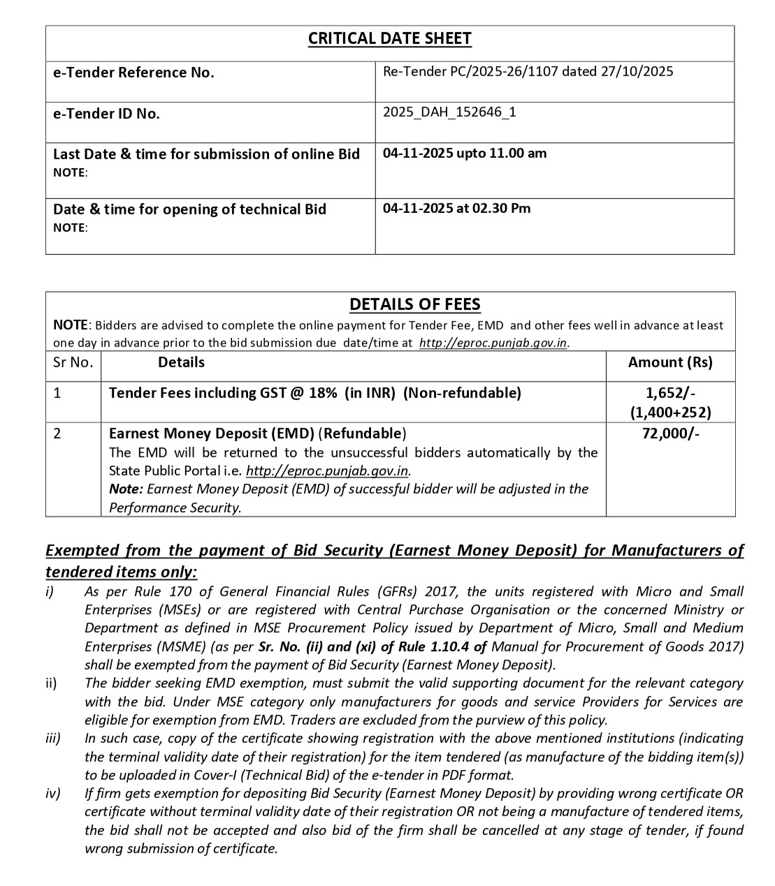Re -Tender notice for Purchase and Installation of 250 KVA Three Phase CPCB IV + Compliant Silent Generator Set along with AMF Panel (ATS), ASO, Purchase Cell, O/o Comptroller, GADVASU, Ludhiana