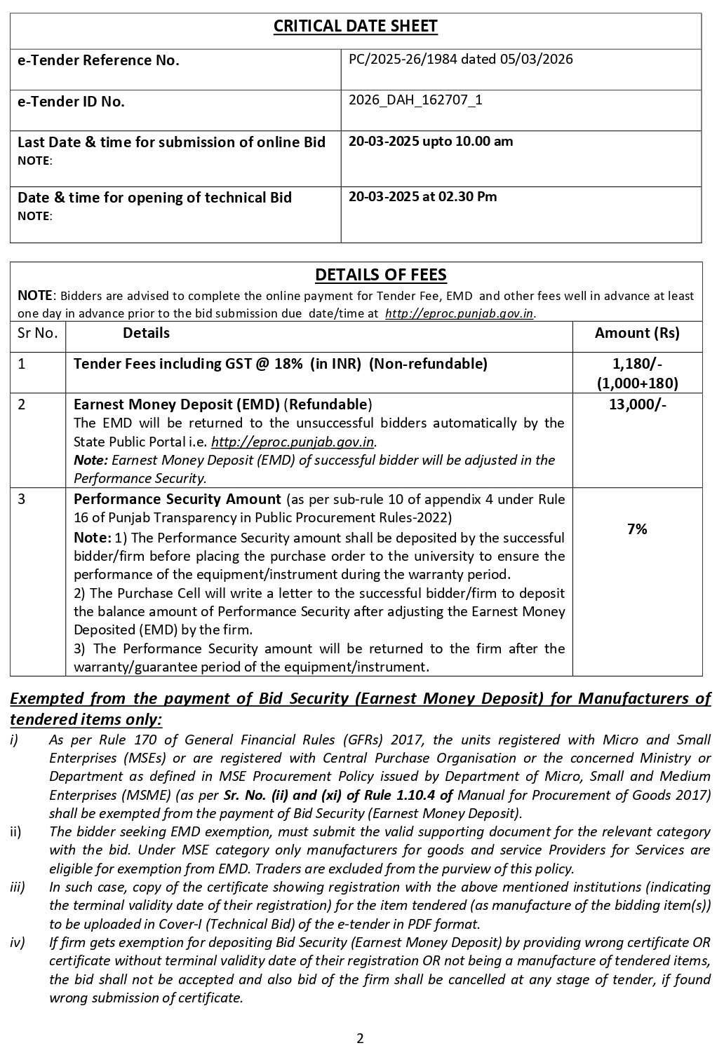 Click here to view full Details for e -Tender notice for the the purchase of Elisa Plate Reader Complete with Software and PC