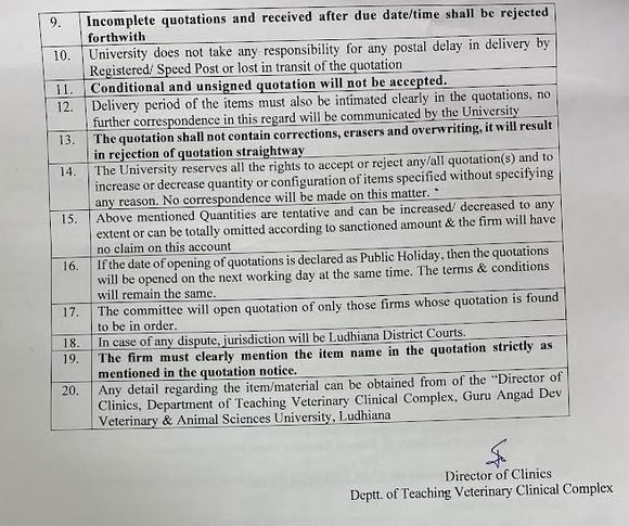 Quotation notice for the supply of reagents of Nihon Kohden make, Department of Teaching Veterinary Clinical Complex, GADVASU, Ludhiana