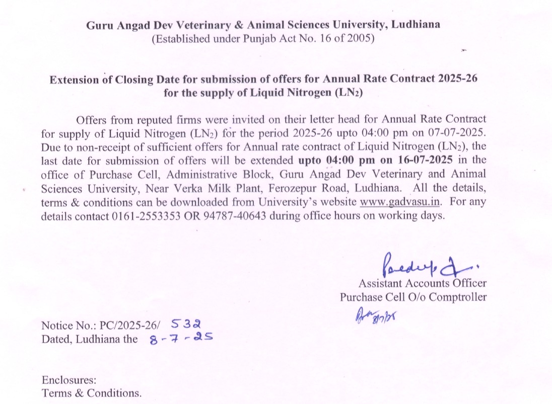 Extension of Closing Date for submission of offers for Annual Rate Contract 2025-26 for the supply of Liquid Nitrogen (LN2)