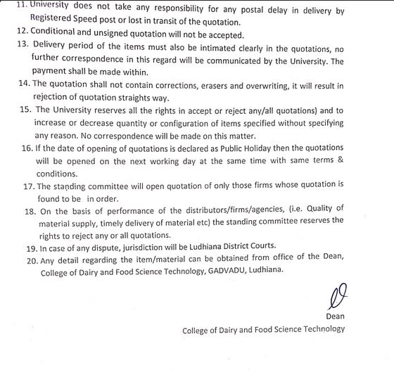 Quotation Notice for the purchase of Printed Glass jar 1 litre for EDP, Dean, College of Dairy & Food Science Technology, Guru Angad Dev Veterinary & Animal Sciences University, Ludhiana