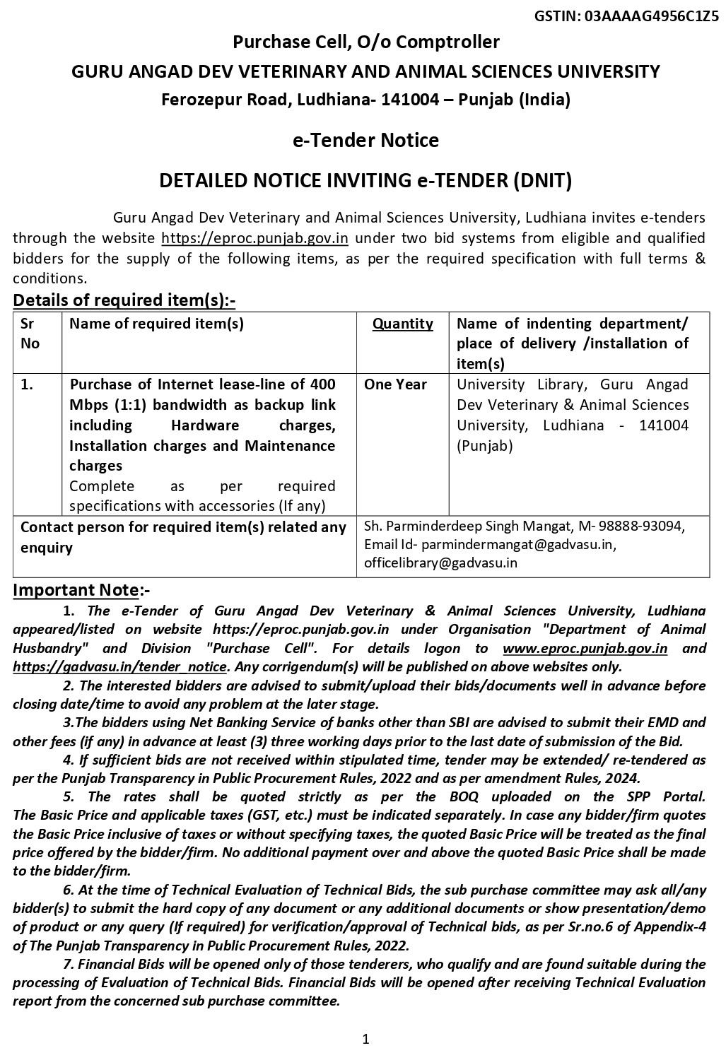 Click here to view full details for e tender for the Purchase of Internet lease-line of 400 Mbps